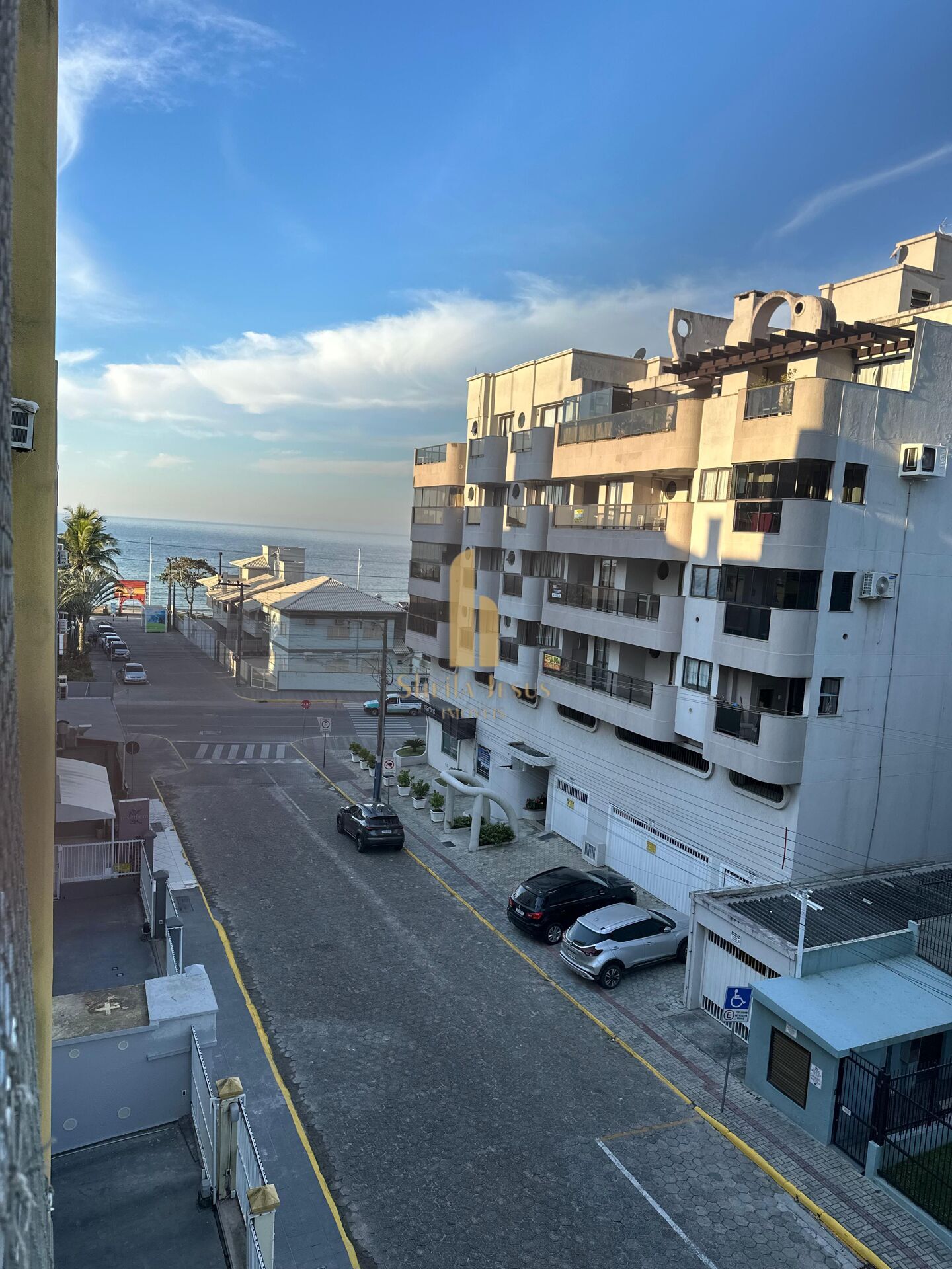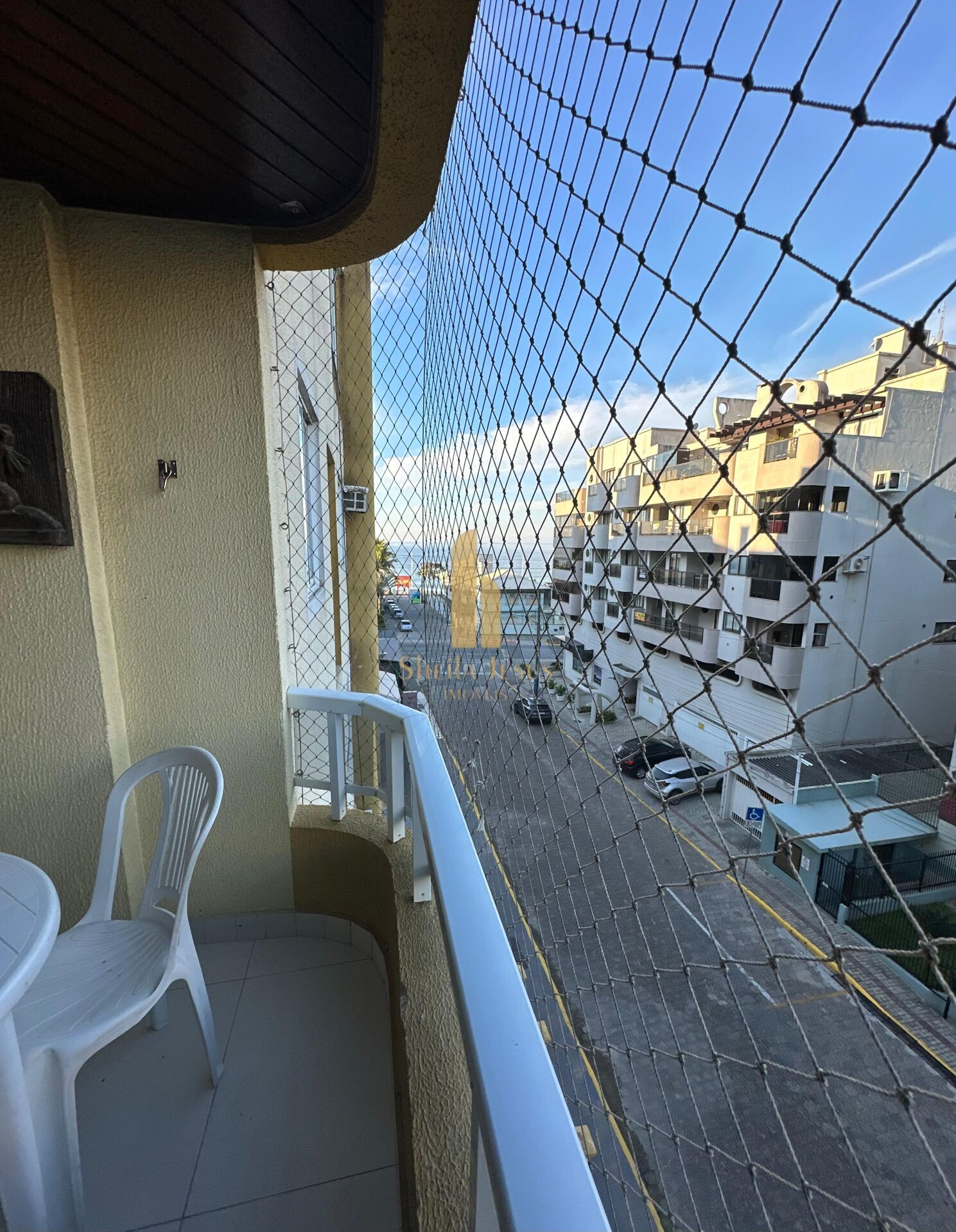 Sacada com churrasqueira carvão, forro em madeira, tela de proteção. Linda vista Mar, à apenas aprox. 150 metros do mar.