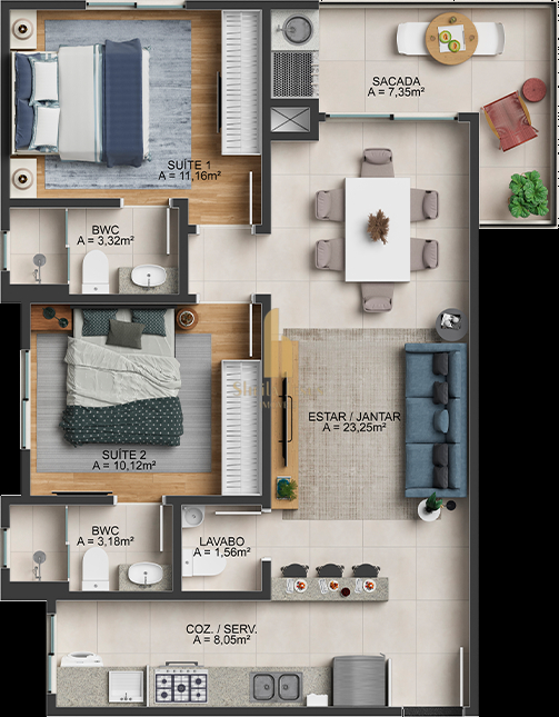 -02 Dorms, sendo 2 suítes