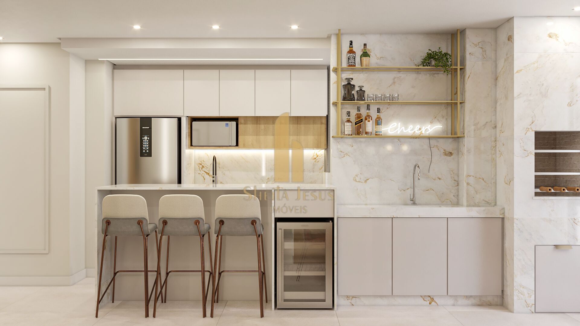 Churrasqueira CarvãoInfra para Ar SplitLavaboLiving IntegradoNicho Embutido ChuveiroPiso Vinílico nos quartosPorcelanatoPortas laqueadasSacada