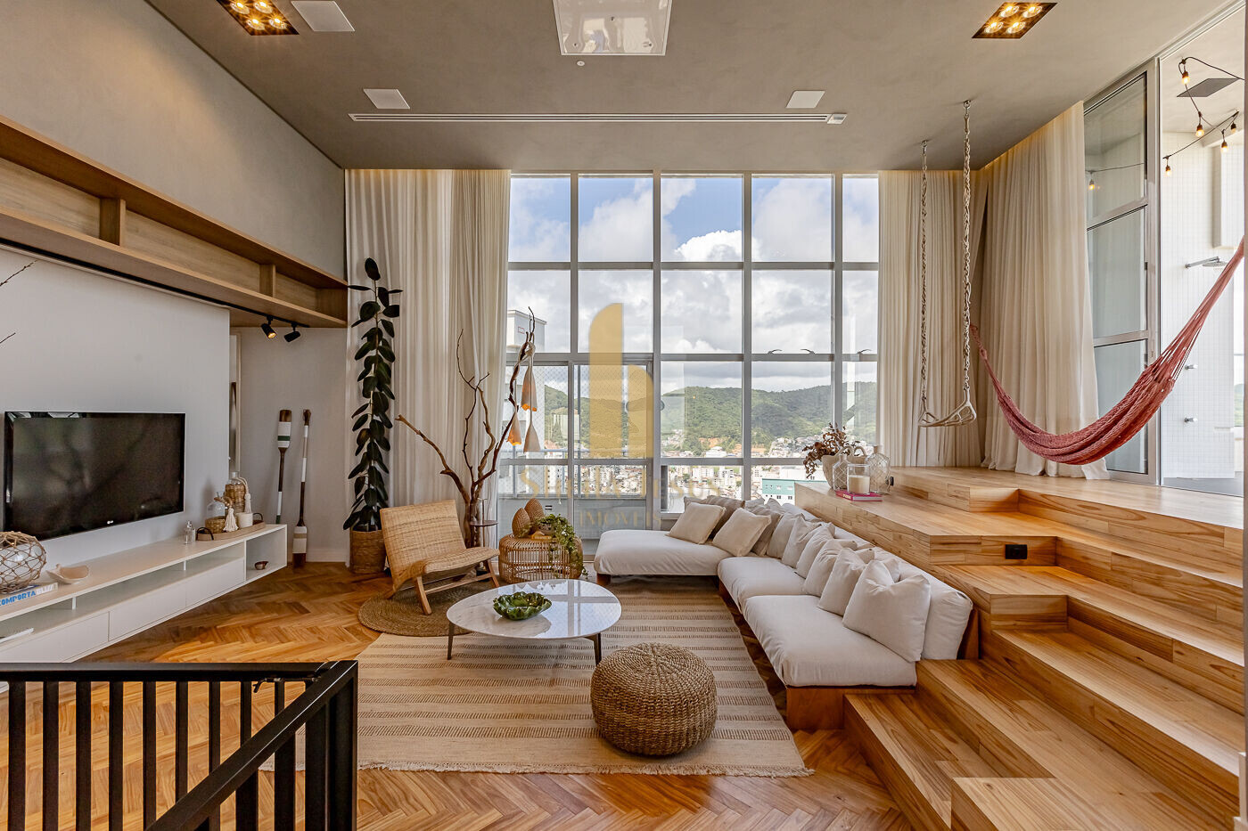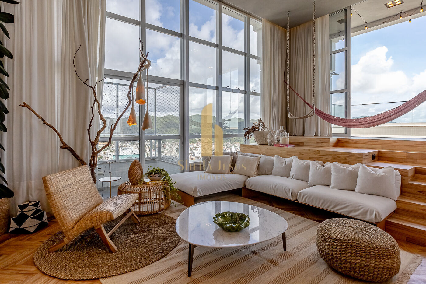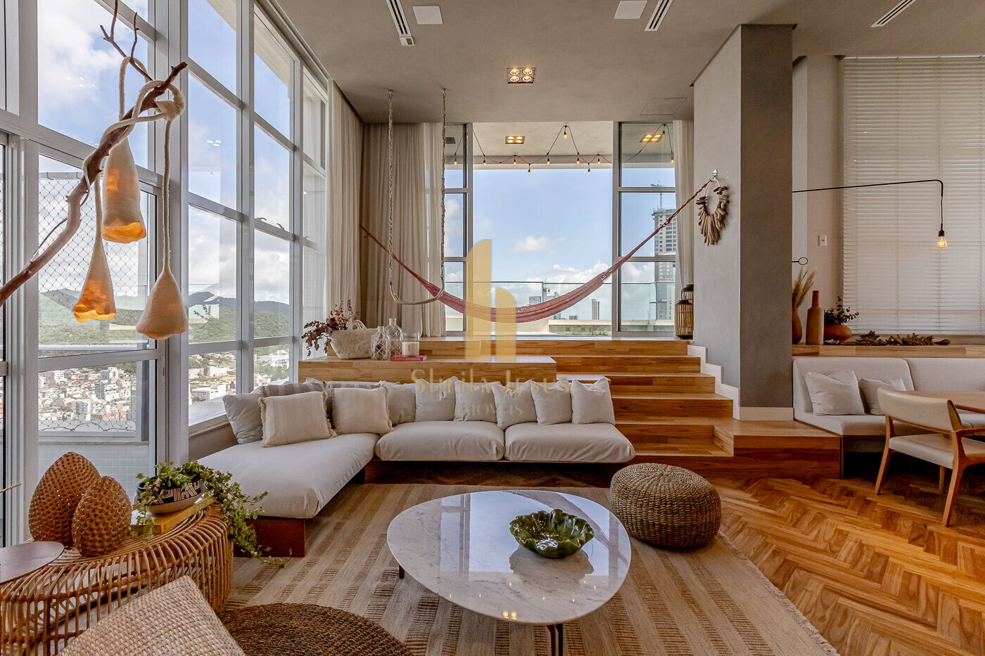- Móveis e decoração do living exclusiva para a cobertura, assinada pelo Jader Almeida