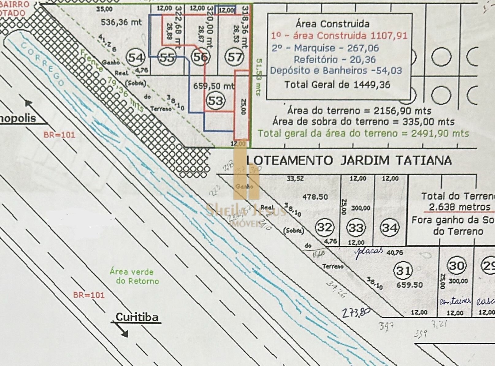 Terreno área geral: 2.491,90m²